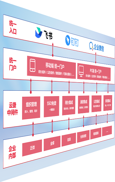 对协作平台提供支持服务,,支持企业应用与协作平台对接,,,包含组织同步、、、、消息集成、、待办集成等。。支持目前主流的协作平台:钉钉、、、企微和飞书。。。
